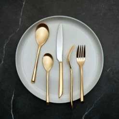 Wallace Antique Baroque Gold Flatware is styled with a historical sensibility, each piece is elaborately sculpted with curling tendrils along pierced edges, culminating in a gently pointed end. Crafted of superior quality 18/10 gold-plated stainless steel.Set of 4 mini coffee spoons, each measures 7-1/2 inch long. Dishwasher safe.