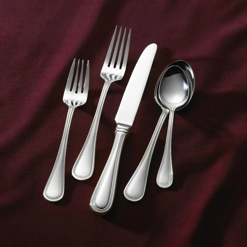 This Wallace Continental Bead Flatware Set features a subtle bead design trim on the handles that adds sophisticated elegance to your table setting.