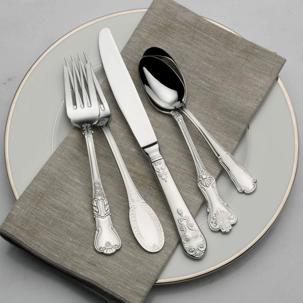 The most popular patterns from Europes grand hotels are reproduced in 18/10 stainless steel, creating a unique, elegant table setting. Perfect for everyday or formal occasions. The look is dramatic and eclectic. Luxe flatware with its five assorted reproduction designs, brings the unique classic back to life. Composed of our five most popular patterns Coburg, Impero, William and Mary, Federalist and Barocco. 20 piece set, service for four, includes (4) each: Impero dinner fork, Coburg salad fork, William and Mary dinner knife, Federalist dinner spoon and Barocco teaspoon. Dishwasher safe.